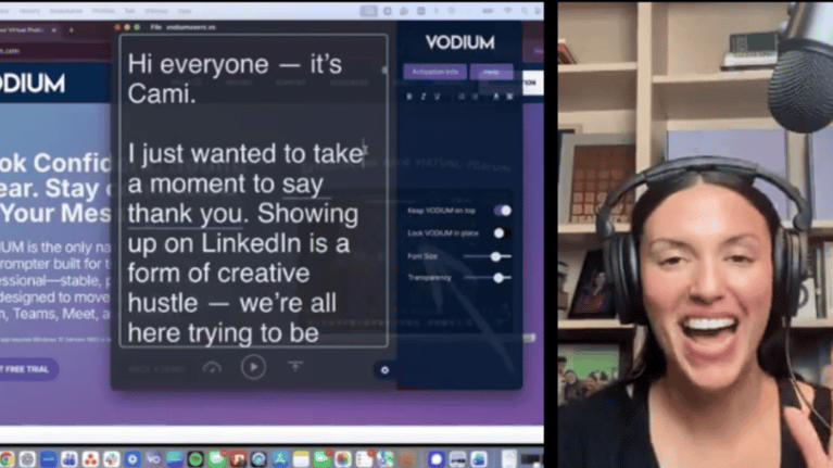 I wrote a short script, dropped it into VODIUM, and positioned the teleprompter window right next to my camera.